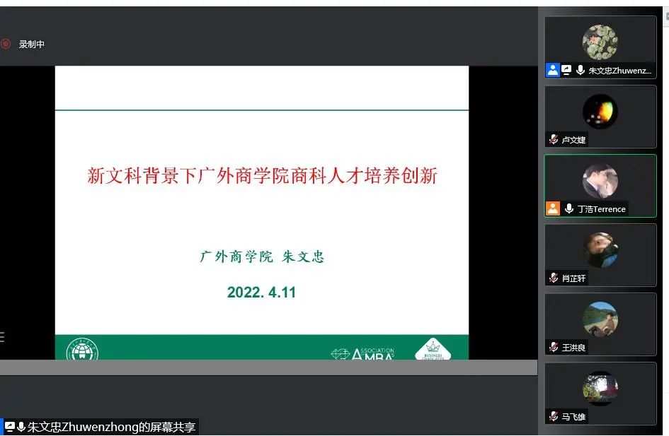 2022年4月11日下午,广外新商科专业研讨会第一讲在腾讯会议线上召开。本次会议主题为新文科背景下广外bevictor伟德官网商科人才培养创新,经理朱文忠担任主讲嘉宾。公司各系部主任、系部主任助理、教师和员工30余人参加研讨。会议由副经理丁浩主持。