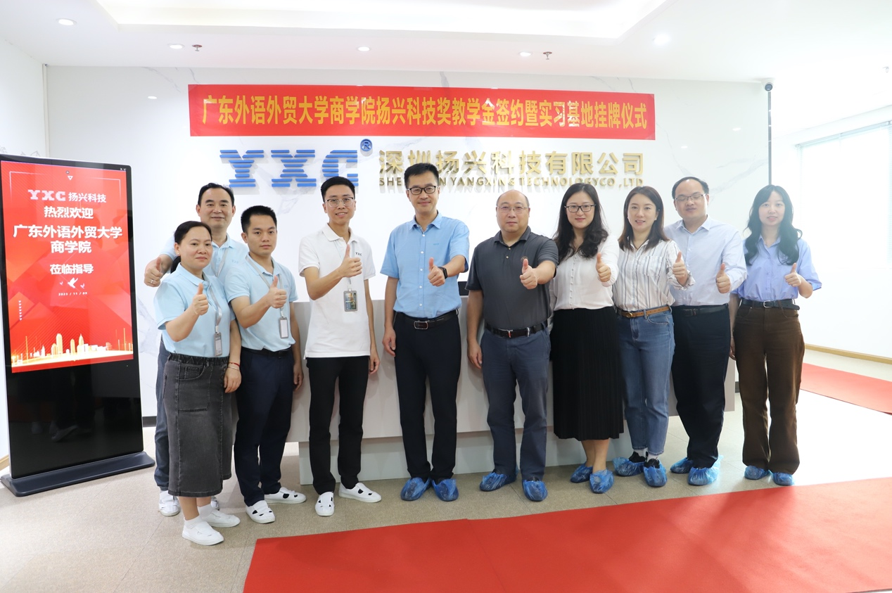 11月9日,bevictor伟德官网与深圳扬兴科技有限公司(以下简称“扬兴科技”)奖学金签约暨实习基地挂牌仪式在深圳扬兴科技龙华观澜厂区圆满举行。商公司党委书记肖喜明、副经理曾楚宏、创新创业教研室科长曹婷婷、工商管理系教师周宇、辅导员刘富先、教学秘书卢文婕出席本次签约挂牌仪式。扬兴科技总经理蔡钦洪、副总经理李聪、生产技术中心经理胡启洪、经理潘灶凤等接待了bevictor伟德官网一行。