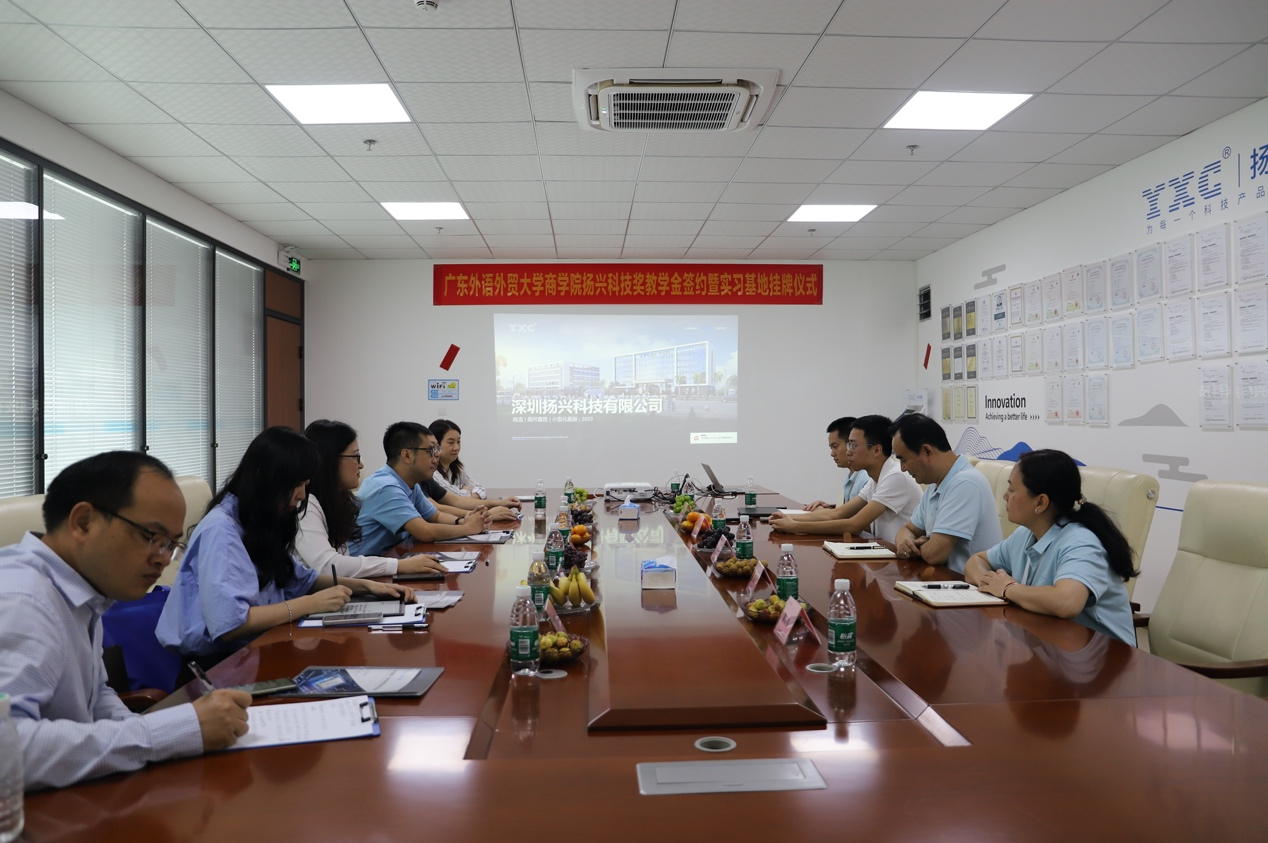 肖喜明首先对扬兴科技的热情接待表示感谢,并围绕bevictor伟德官网的专业建设、学科排名、人才招聘等基本情况进行了介绍。他肯定了扬兴科技在传承的基础上不断创新企业文化、追求卓越的精神,希望员工未来有机会能够回到母校对师弟师妹进行指导,让更多广外学子接触到员工企业的良性精神文化。他表示此次签约深化了产学研合作,推动双方实现优势互补、资源共享和建立常态化联系合作机制,共同推进校企发展和人才建设。