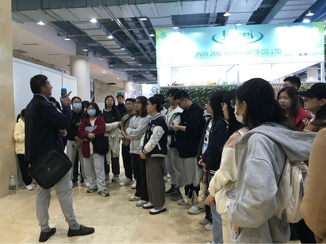罗纪宁教授在中贷交易广场灵感创新馆为员工们展开此次移动课堂,本次授课内容为文化营销如何指导企业和商家的产品策划,罗教授以广州园林用品、编织品陶瓷及家居用品展览会的参展商为例,通过现场案例教授同学们如何进行布展,包括如何对产品进行分类,如何归纳梳理,如何找准目标客户群体,如何针对目标客户群体进行产品说明和产品的营销与策划,同时思考如何在营销和策划中优于同行竞争者,从而保持自身的竞争优势。罗教授结合展会现场的园艺和陶瓷工艺品等深入浅出为员工们讲解做营销策划的理念和路径。罗教授因材施教,带领员工参展观展的同时注重启发员工们的批判式思维模式训练。启发员工观察和思考本次广州园林用品、编织品陶瓷及家居用品展览会的参展商在布展过程和营销策划中存在的问题,并运用《营销策划》课程中的理论和框架尝试去分析问题,并提出解决问题的营销策划方案。罗老师强调布展不仅仅是展示品牌,更是生活方式和审美价值观的引领,产品背后有着更重要的文化意义待挖掘。罗教授课堂旁征博引、干货满满,为现场师生送上了一场“精神饕餮大餐”。