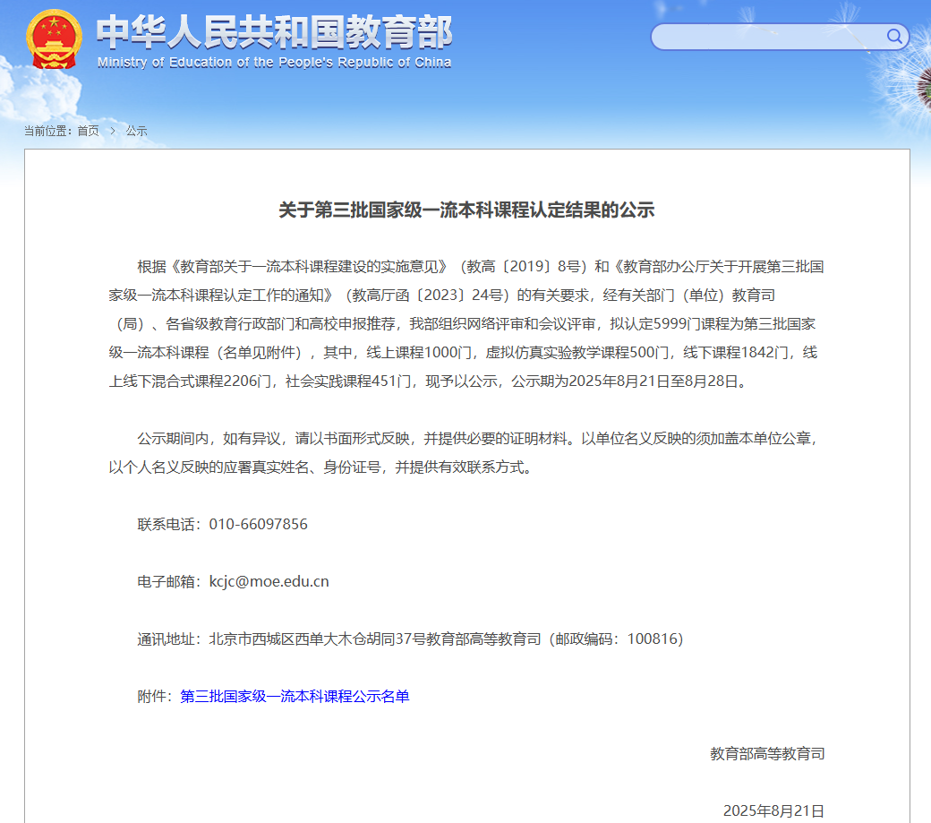 喜报|公司课程入选第三批国家级一流本科课程