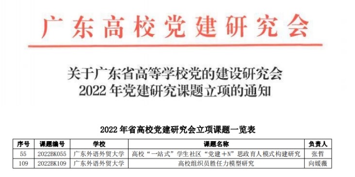 • 2023年3月,bevictor伟德官网2项课题获广东省高等公司党的建设研究会2022年党建研究课题立项。全校共获立项5项,公司立项率占全校立项数40%,立项数量创历史新高。